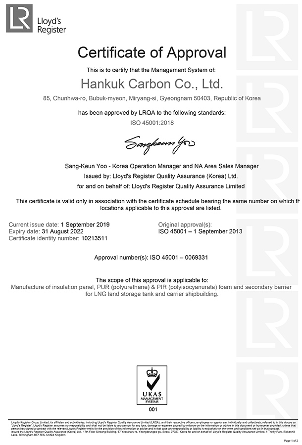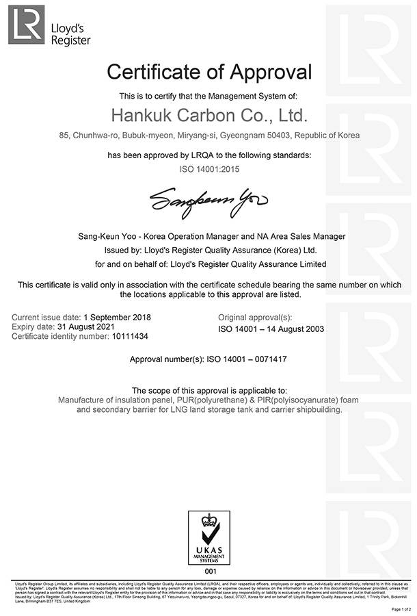 한국카본의 인증된 매니지먼트 시스템은 고객에게 신뢰를 제공합니다.
